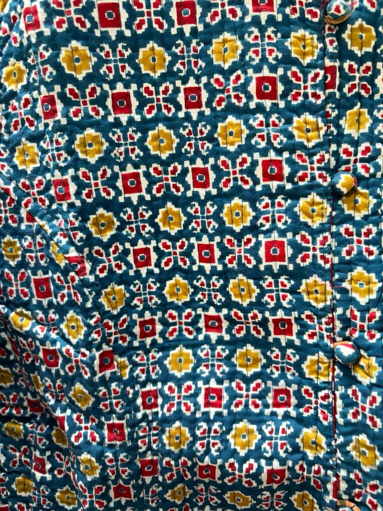 Fabric/product: Handmade 100% Cotton, Reversible Jacket Both side Different Design. You can use Both side.